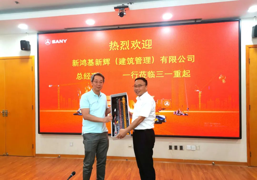 在與重起事業(yè)部座談會(huì)上,新鴻基考察團(tuán)、中富香港與三一集團(tuán)重起事業(yè)部等領(lǐng)導(dǎo)就“三一重起歷史及發(fā)展方向”“三一天秤技術(shù)參數(shù)、內(nèi)外爬數(shù)據(jù)及相關(guān)建議”、“三一電動(dòng)起重機(jī)及相關(guān)產(chǎn)品在香港使用場景及相關(guān)建議”等話題展開深入洽談,并達(dá)成派三一重起研究團(tuán)隊(duì)赴香港,根據(jù)當(dāng)?shù)刈鳂I(yè)場景制定成套三一天秤、起重機(jī)解決方案等各類共識(shí),會(huì)後雙方互贈(zèng)了紀(jì)念品。