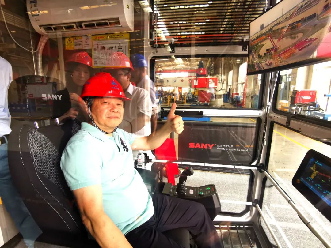 當(dāng)天,考察團(tuán)領(lǐng)導(dǎo)還親自試駕三一智能天秤遠(yuǎn)程操控系統(tǒng)。并為上述遠(yuǎn)程操控系統(tǒng)的安全性、智能化、便捷性點(diǎn)贊!考察團(tuán)中天秤專家還專門親自上三一天秤體驗(yàn)實(shí)操。