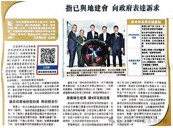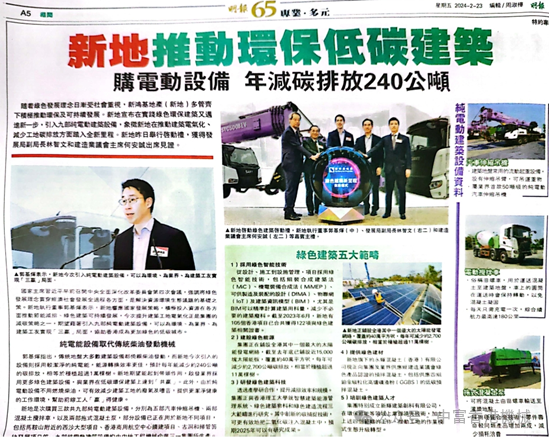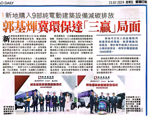 2024年2月22日,由新鴻基地產(chǎn)攜手旗下新輝建築、三一集團旗下中富香港舉行的「綠色建築新里程啟動儀式」圓滿舉辦。